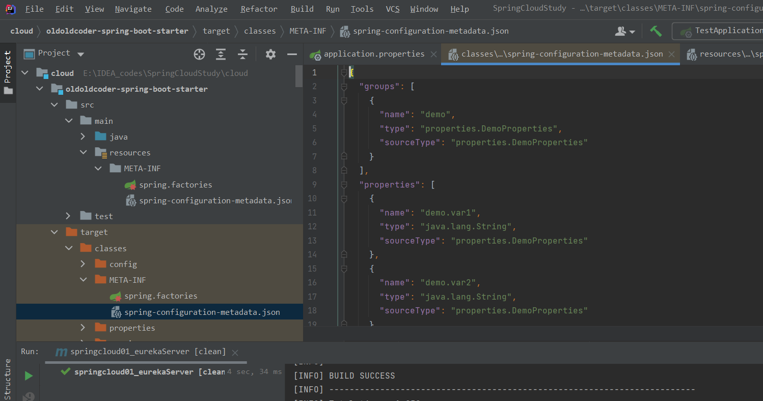 依赖:spring-boot-configuration-processor 作用:导入之后会自动生成元数据(meta-data),在application.properties配置的时候会有提示。